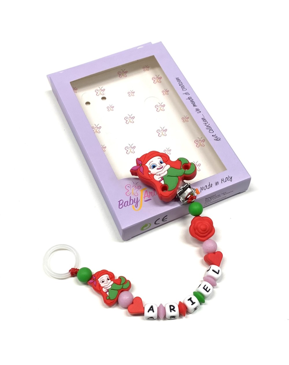 Attache-Sucette Personnalisée, ARIEL LA PETITE SIRèNE, Sucette avec Prénom, Chaîne Tétine en Silicone, Porte-Tétine Personnalisé