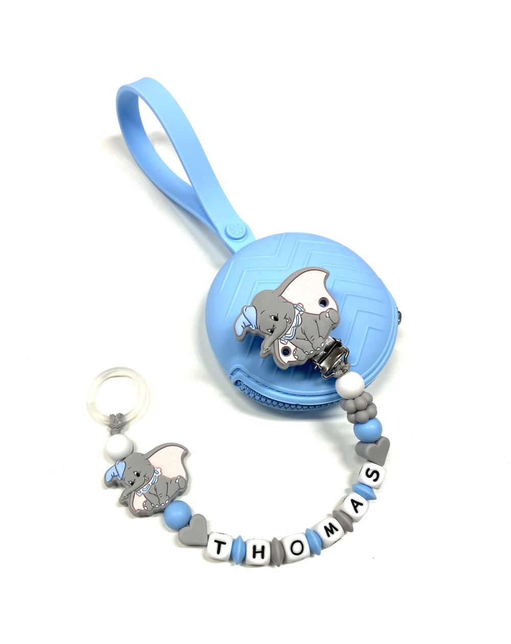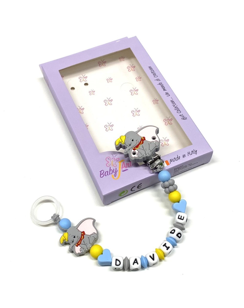 Attache-Sucette Personnalisée, DUMBO , Sucette avec Prénom, Chaîne Tétine en Silicone, Porte-Tétine Personnalisé
