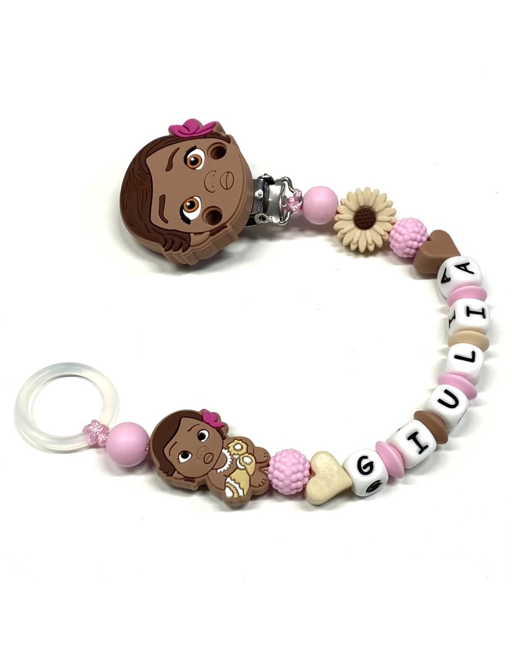 Attache-Sucette Personnalisée, VAIANA OCEANIA, Sucette avec Prénom, Chaîne Tétine en Silicone, Porte-Tétine Personnalisé