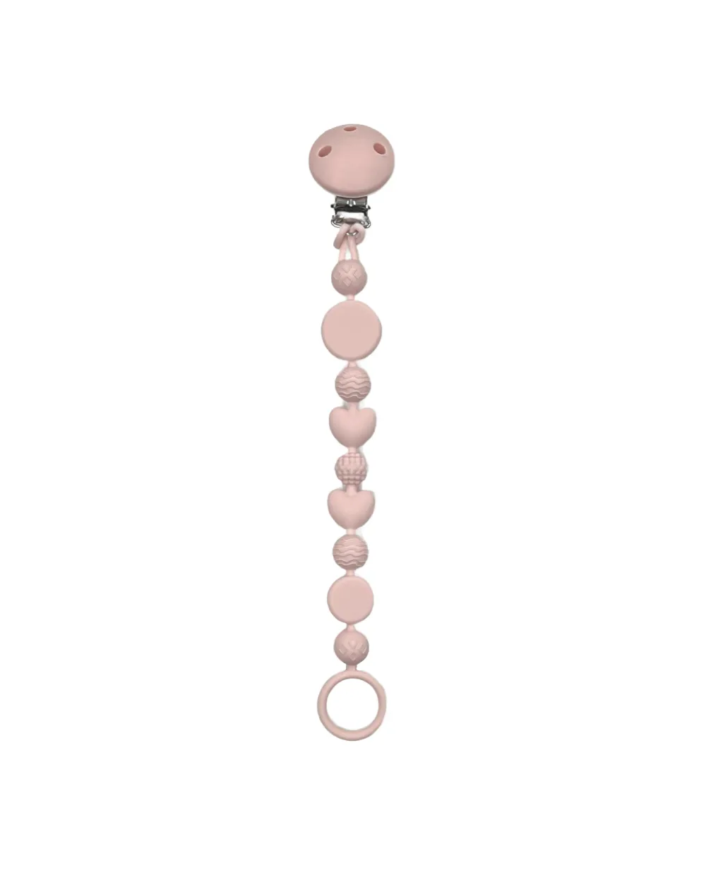 Per ragioni di sicurezza, la catenella portaciuccio raggiunge una lunghezza massima di 22 cm, misurata dall’attacco del ciuccio alla fine della perlina, clip esclusa, come previsto dalle normative di riferimento.