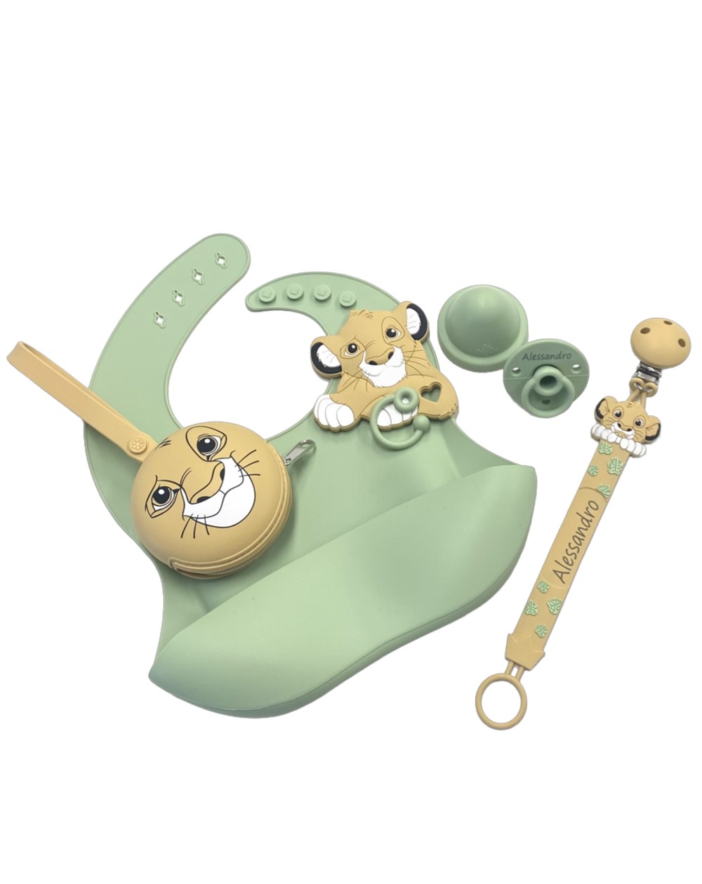 Catenella Portaciuccio personalizzata in Silicone FLAT - Portaciuccio con Nome - Re Leone Simba - Naturale