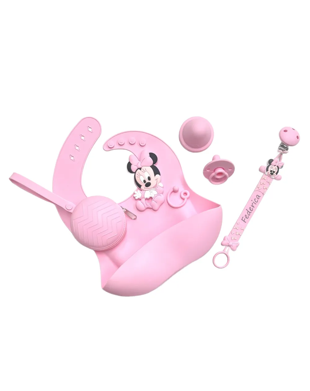 Catenella Portaciuccio personalizzata in Silicone FLAT - Portaciuccio con Nome - Minnie - Rosa chiaro