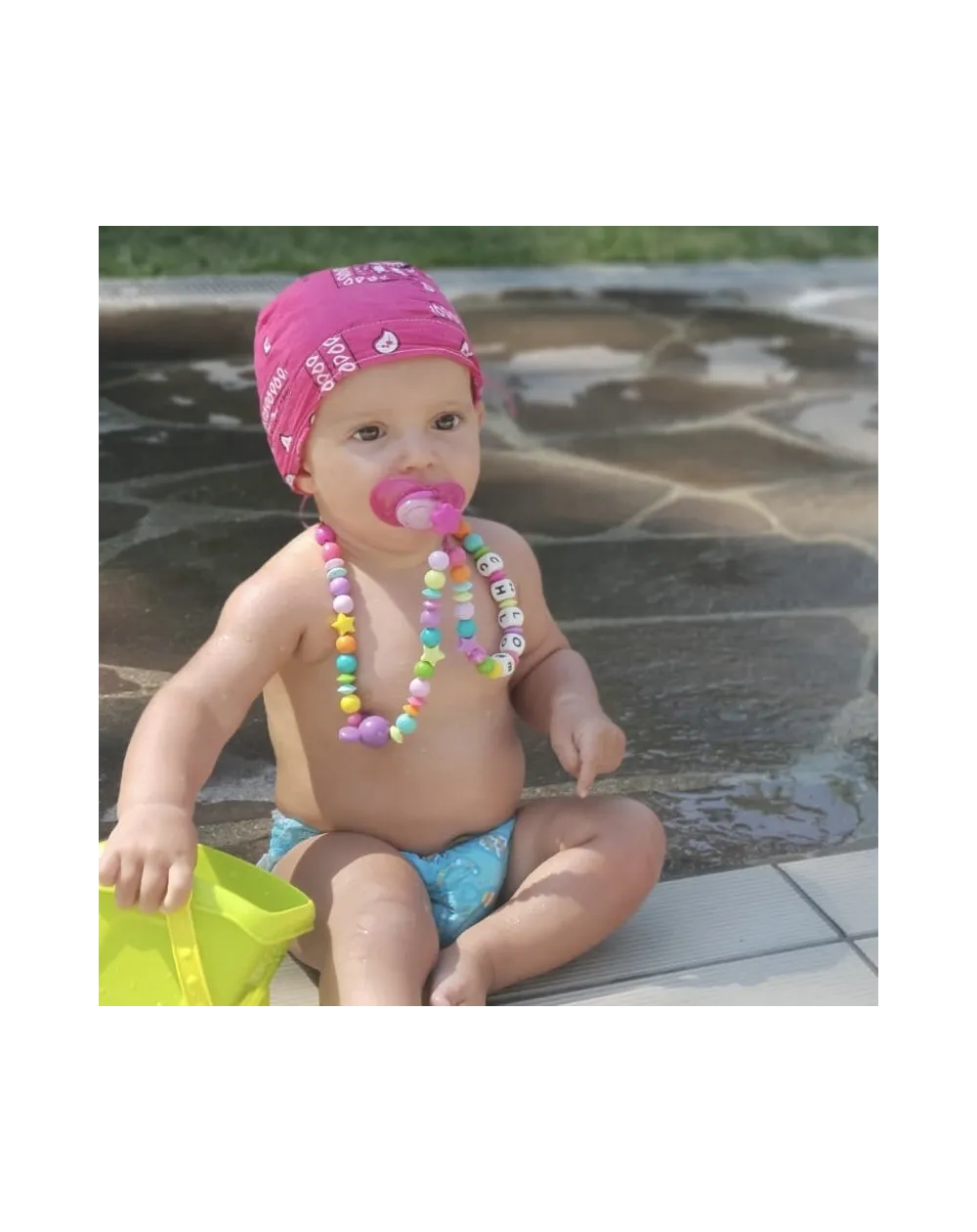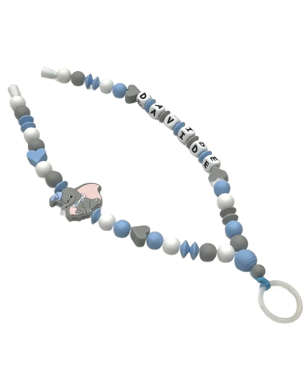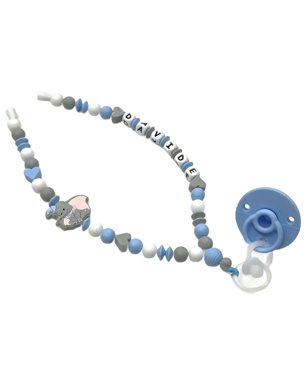 Collana portaciuccio pratica e sicura, ideale per mantenere il ciuccio sempre pulito e a portata di mano.