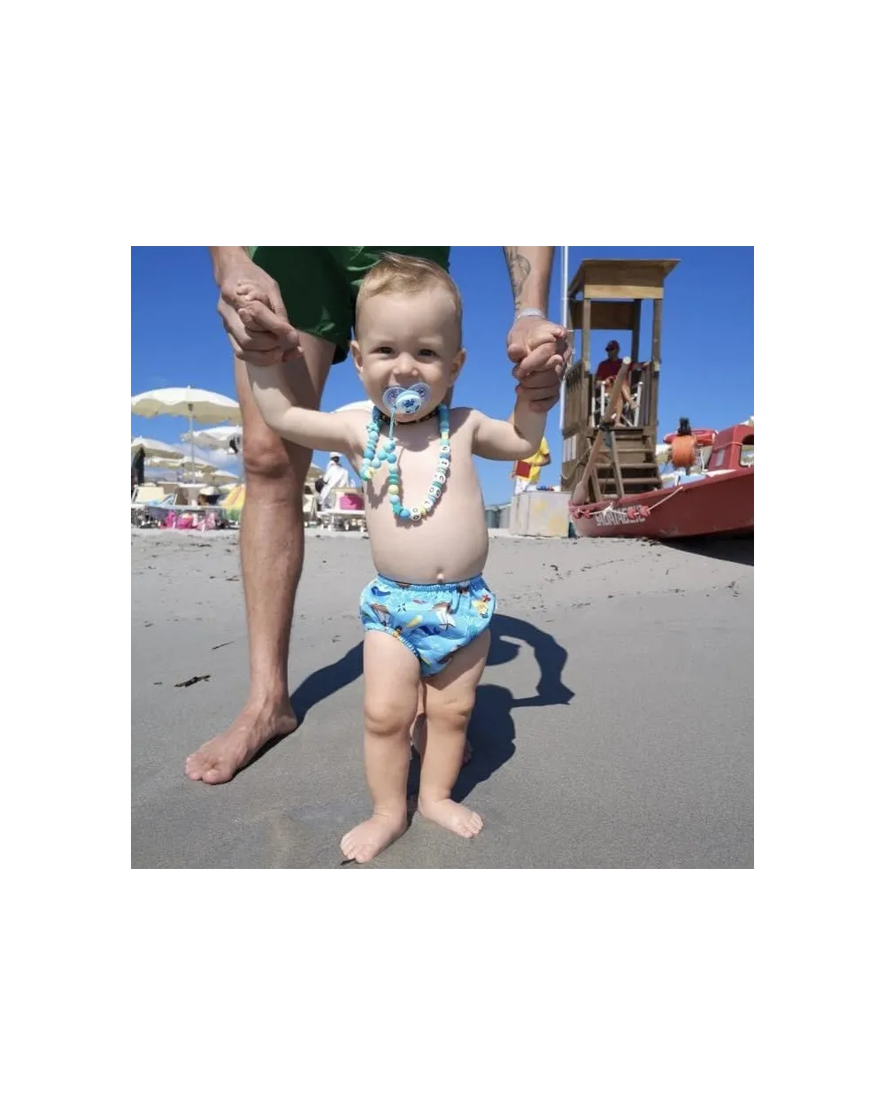 Dotata di chiusura di sicurezza apri-chiudi, la collana è progettata per aprirsi in caso di trazione, garantendo maggiore sicurezza. Grazie al doppio adattatore universale, è compatibile con tutte le principali tipologie di ciuccio, anche senza anello.