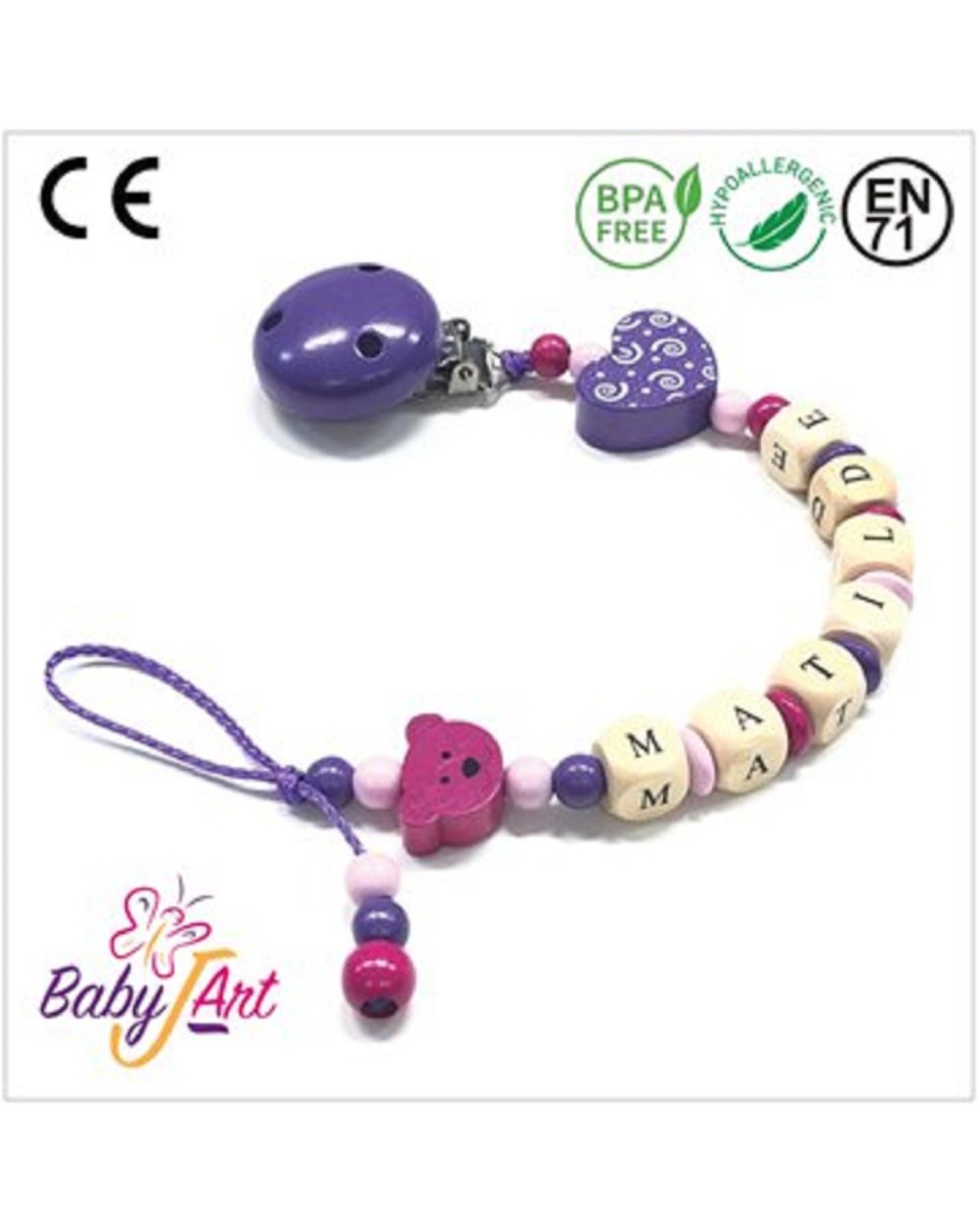 Babyjart Catenella portaciuccio legno con nome, gancio/adattatore ciuccio mam