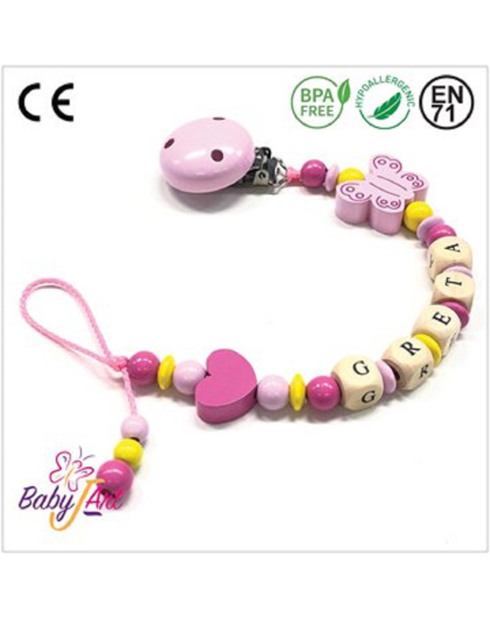 Babyjart Catenella portaciuccio legno con nome, gancio/adattatore ciuccio mam