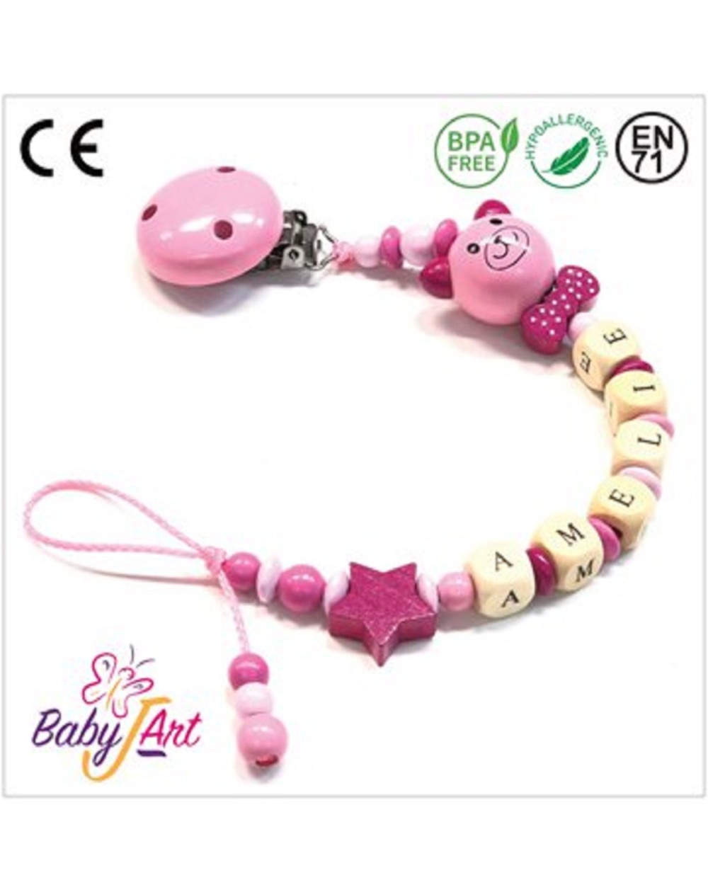 Babyjart Catenella portaciuccio legno con nome, gancio/adattatore ciuccio mam