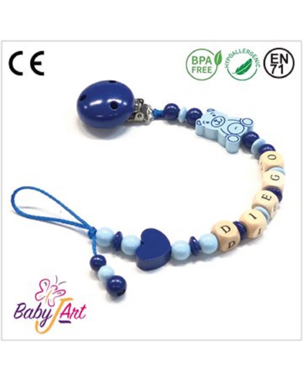 Babyjart Catenella portaciuccio legno con nome, gancio/adattatore ciuccio mam