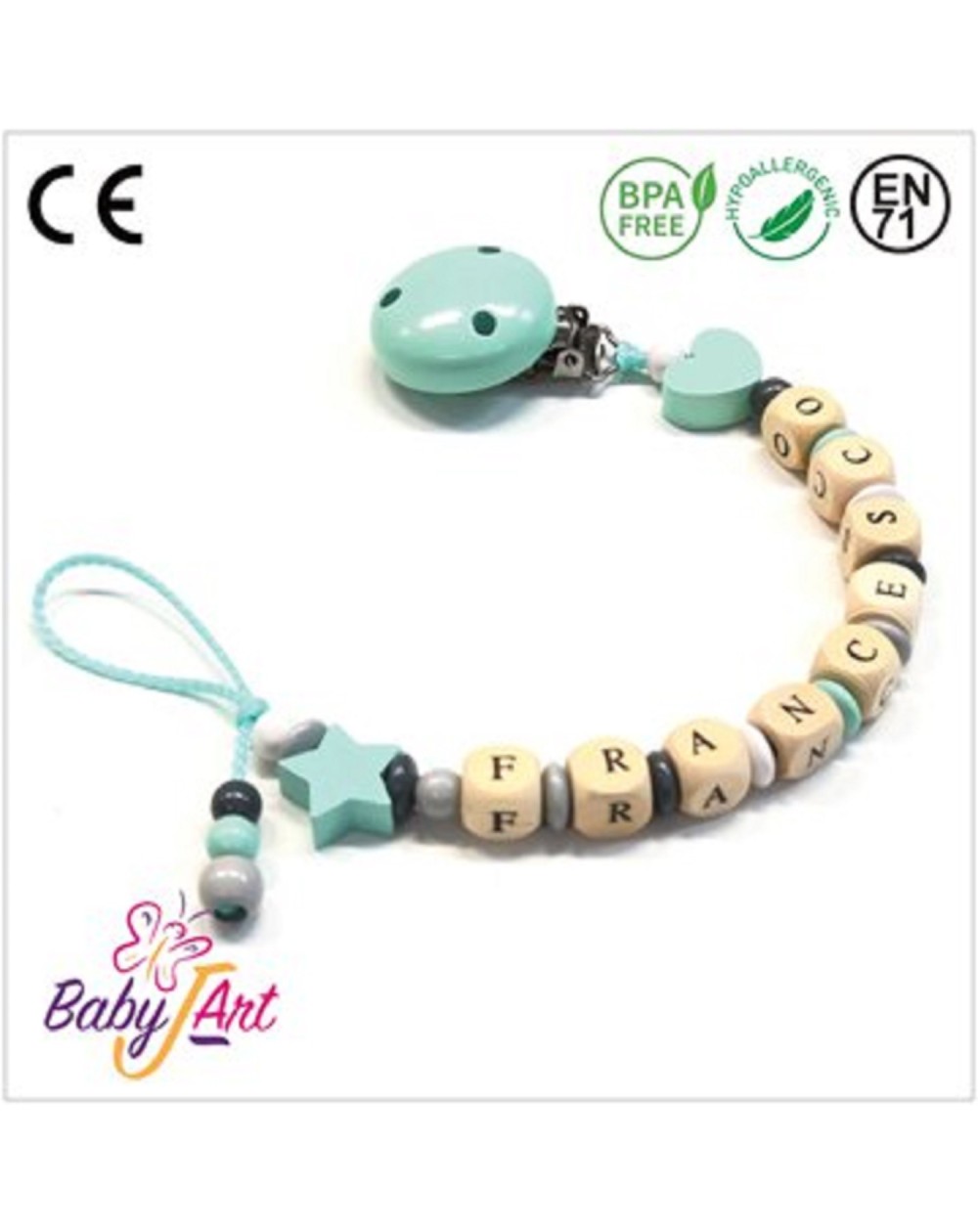 Babyjart Catenella portaciuccio legno con nome, gancio/adattatore ciuccio mam