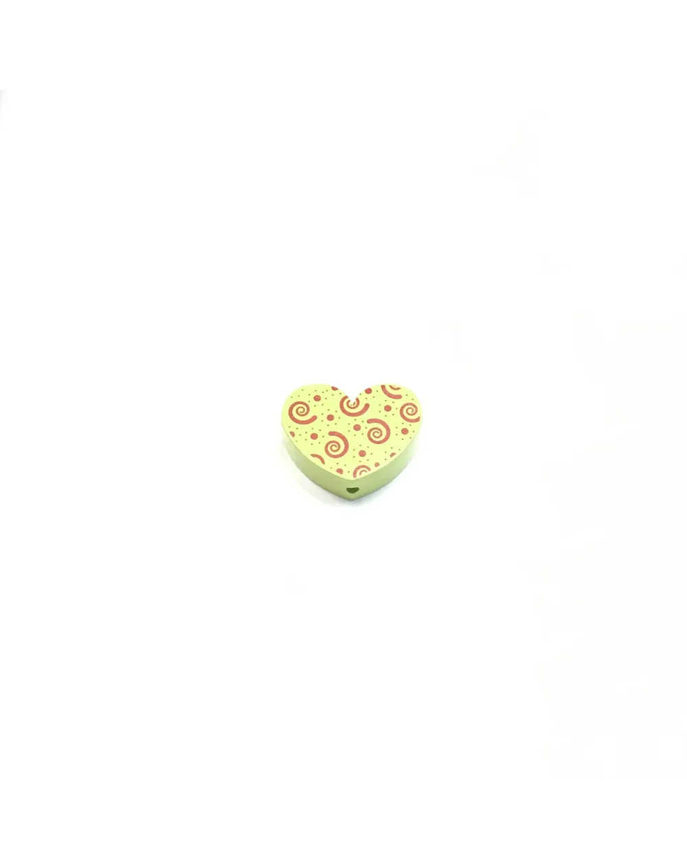 Cuore Ghirigori in LEGNO. Dimensioni ca. 30X25X10 mm. Foro ca. 3mm verticale (da sopra a sotto)