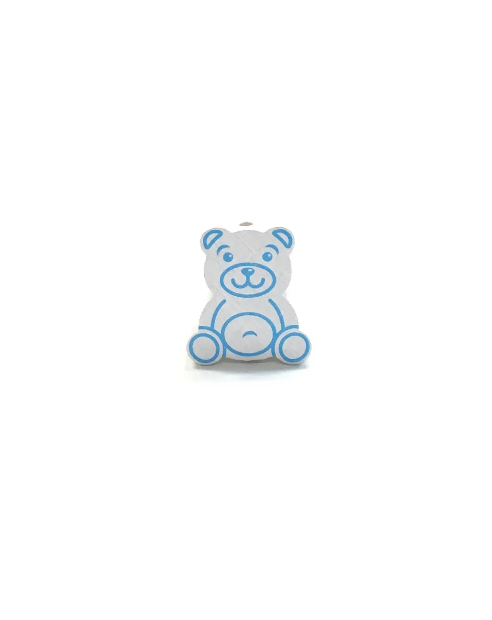 Orso TEDDY in LEGNO. Dimensioni ca. 22x27x10mm. Foro ca. 3mm verticale (da sopra a sotto)