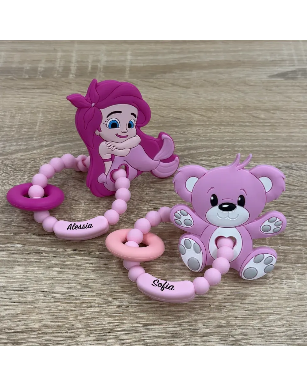 Mordedor de silicone personalizado com nome – Rosa claro