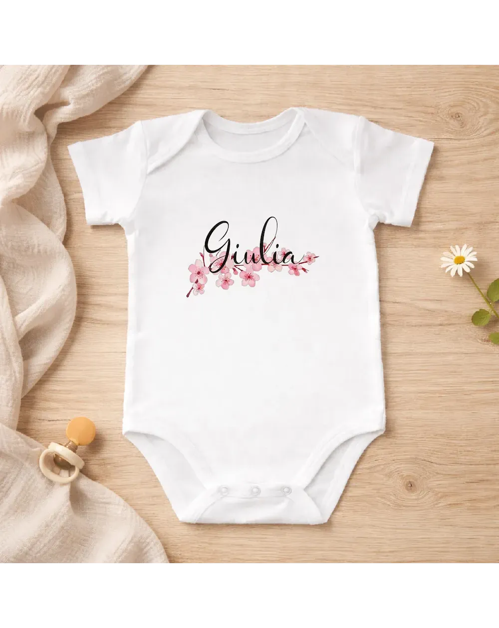 Graças à personalização com nome e imagem, cada body torna-se único. Pode criar uma peça especial com o nome do seu bebé, uma pequena ilustração ou um símbolo delicado, sendo também perfeito como presente original para nascimento, batizado ou baby shower.