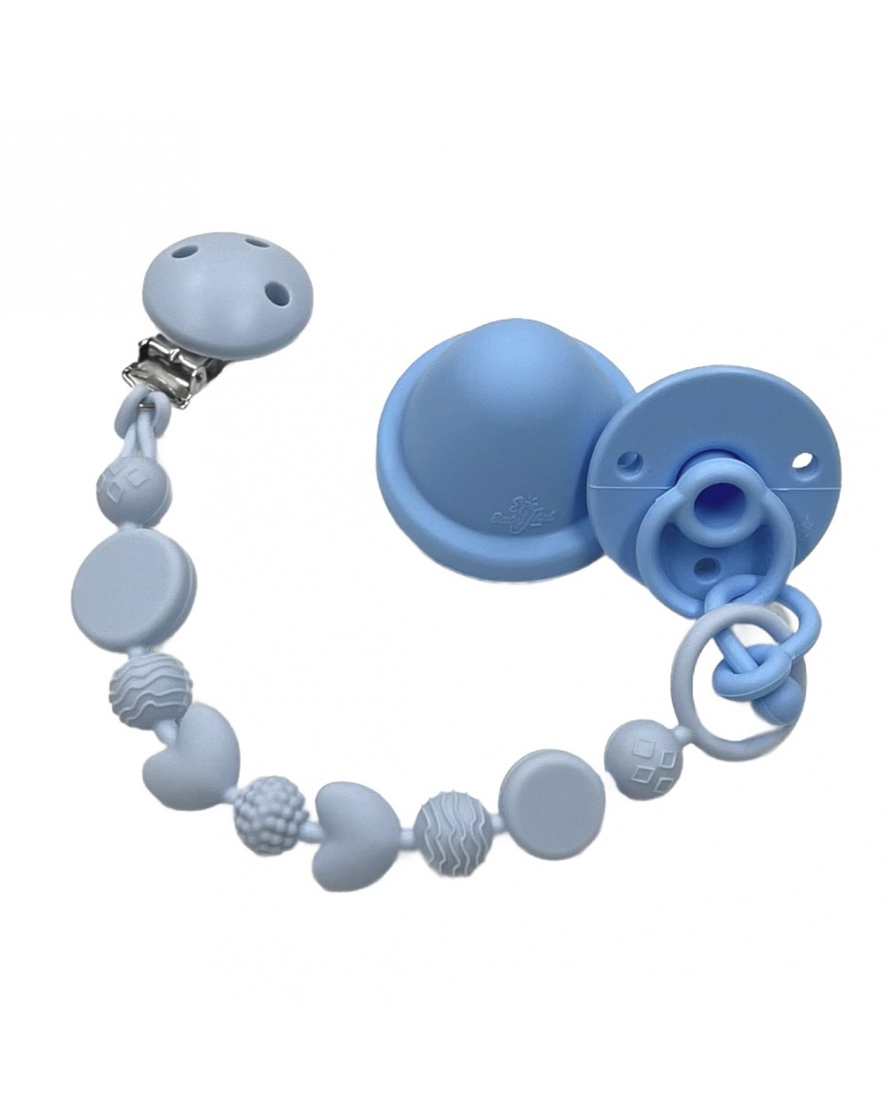 Corrente para chupeta de silicone, fabricada em conformidade com as normas EN 71-3 e UNI EN 12586.