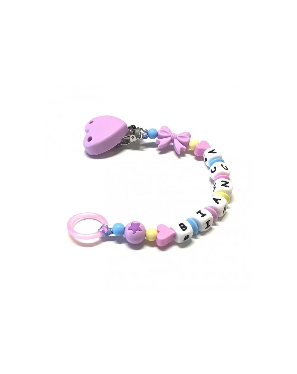 Babyjart Cadeia de chupeta de silicone com nome, adaptador / gancho de chupeta MAM e modelo CHICCO