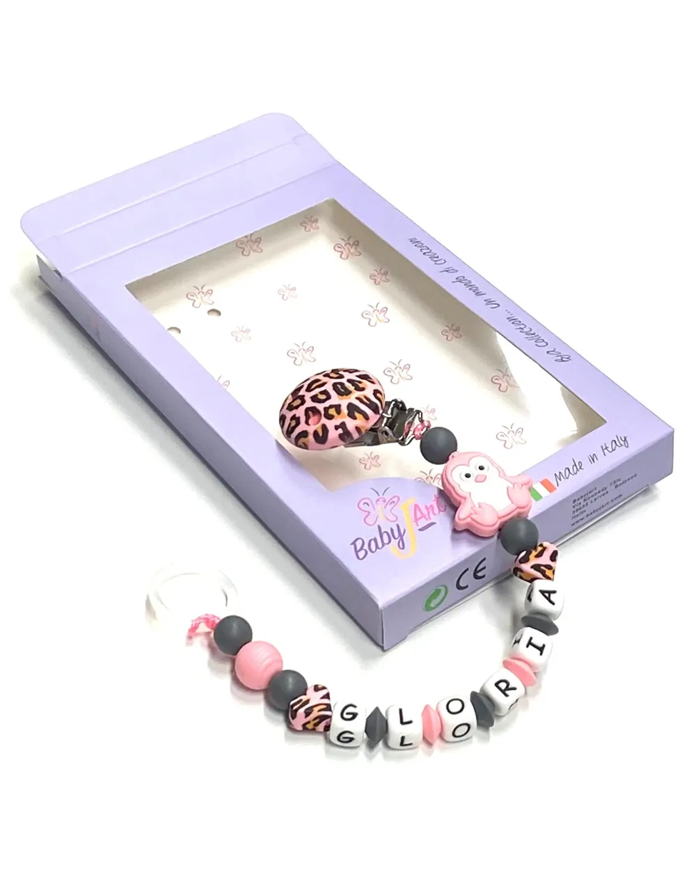 Babyjart Cadeia de chupeta de silicone com nome, adaptador / gancho de chupeta MAM e modelo CHICCO