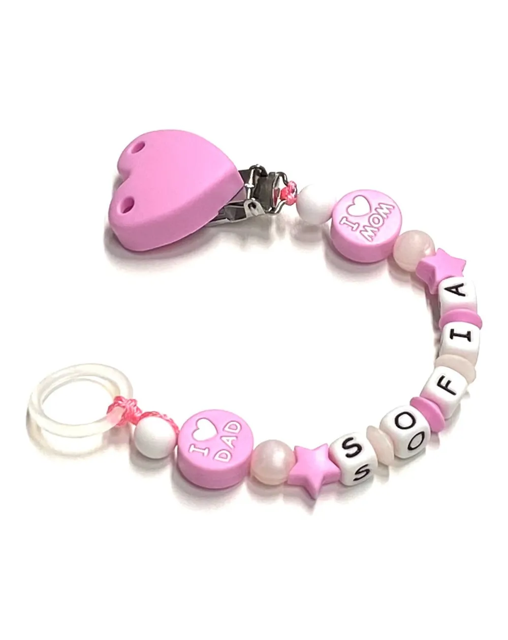 Babyjart Cadeia de chupeta de silicone com nome, adaptador / gancho de chupeta MAM e modelo CHICCO