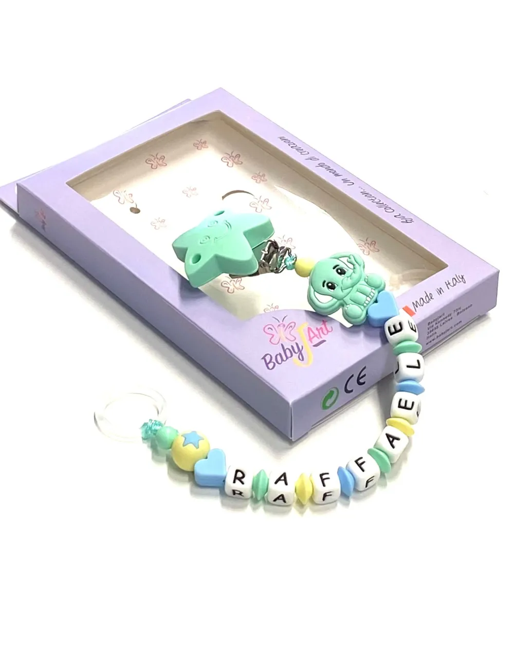 Babyjart Cadeia de chupeta de silicone com nome, adaptador / gancho de chupeta MAM e modelo CHICCO
