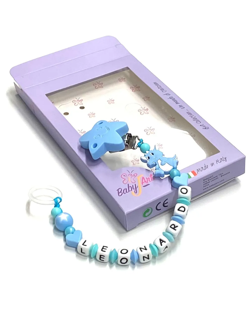 Babyjart Cadeia de chupeta de silicone com nome, adaptador / gancho de chupeta MAM e modelo CHICCO
