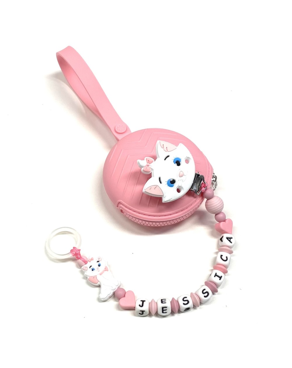 Babyjart Cadeia de chupeta PRESTIGE MINOU de silicone com nome, adaptador / gancho de chupeta MAM e modelo CHICCO