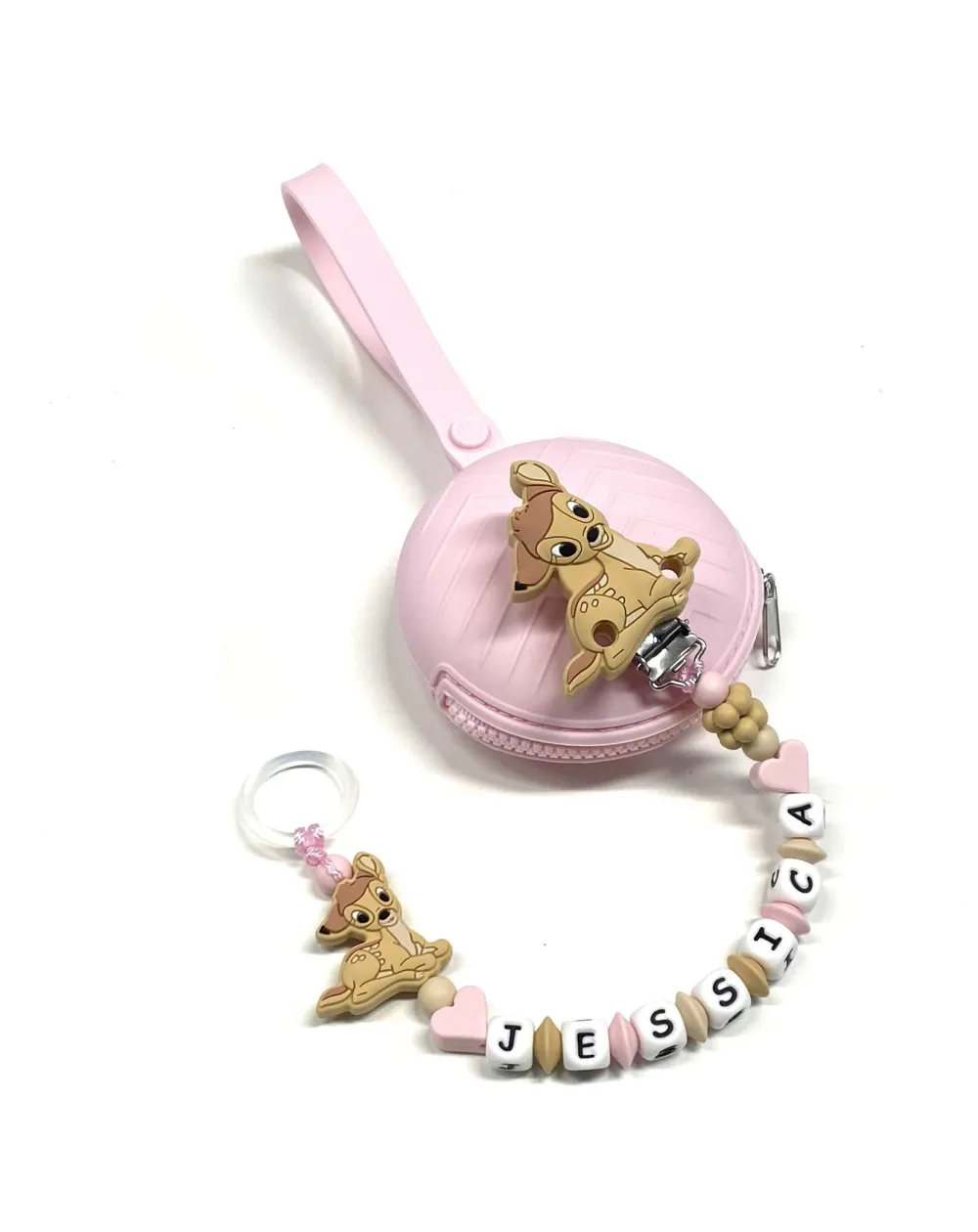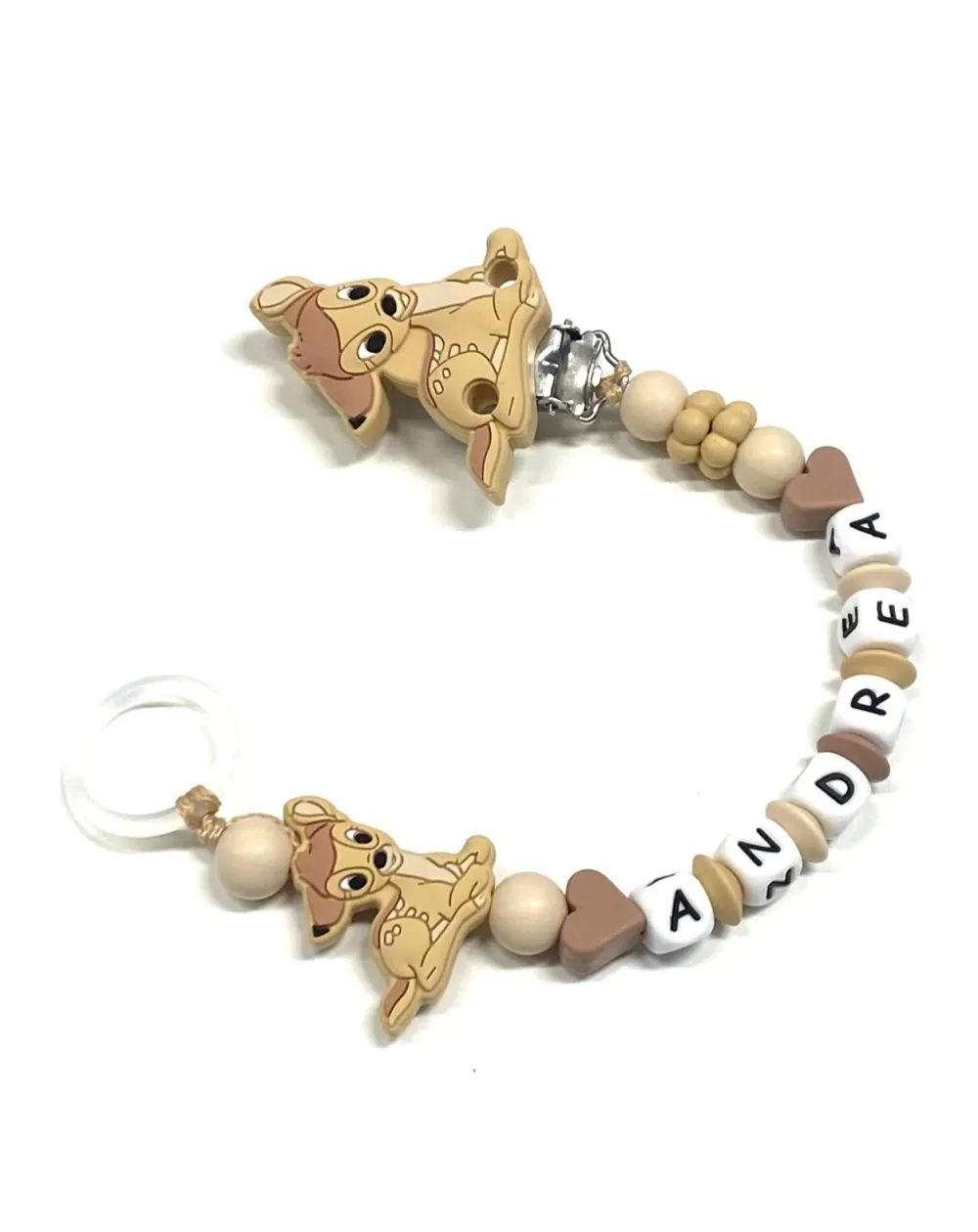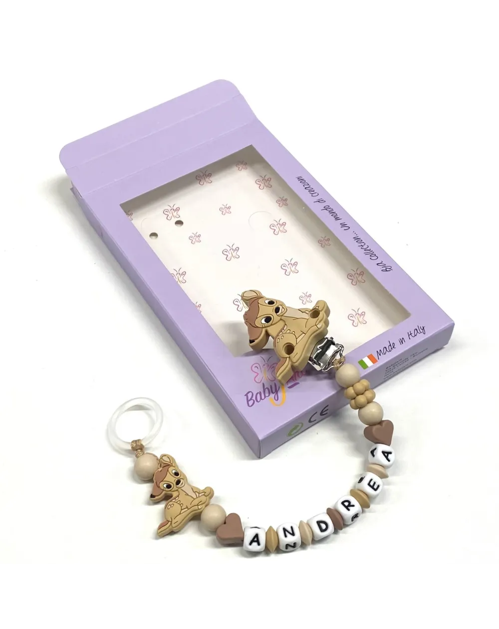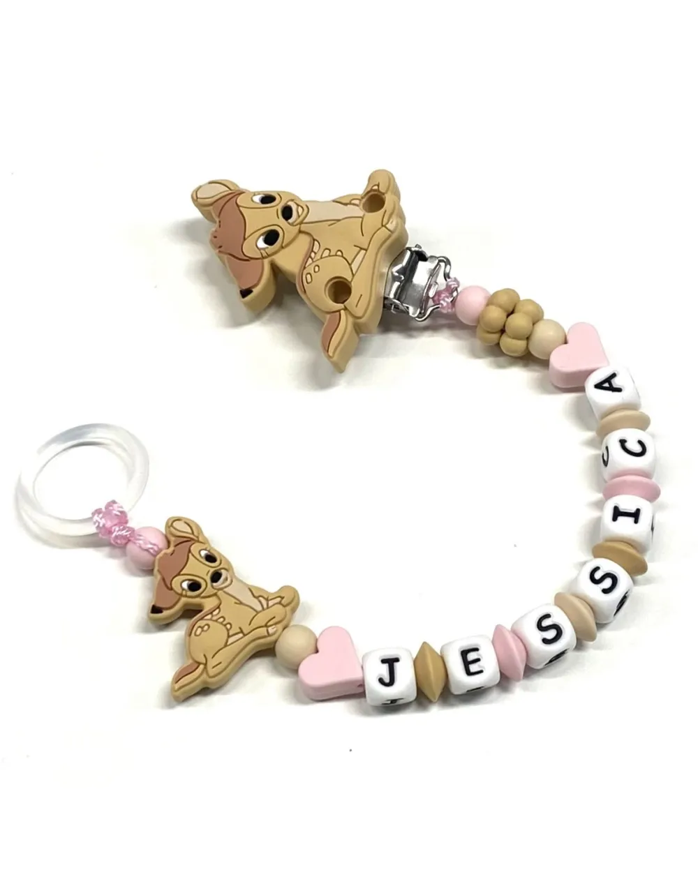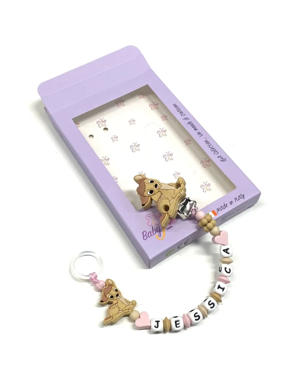 Cateninha Porta-Chupeta Personalizada,BAMBI, Porta-Chupeta com Nome, Cateninha em Silicone, Porta-Chupeta Personalizado