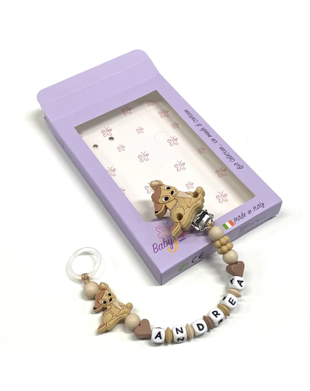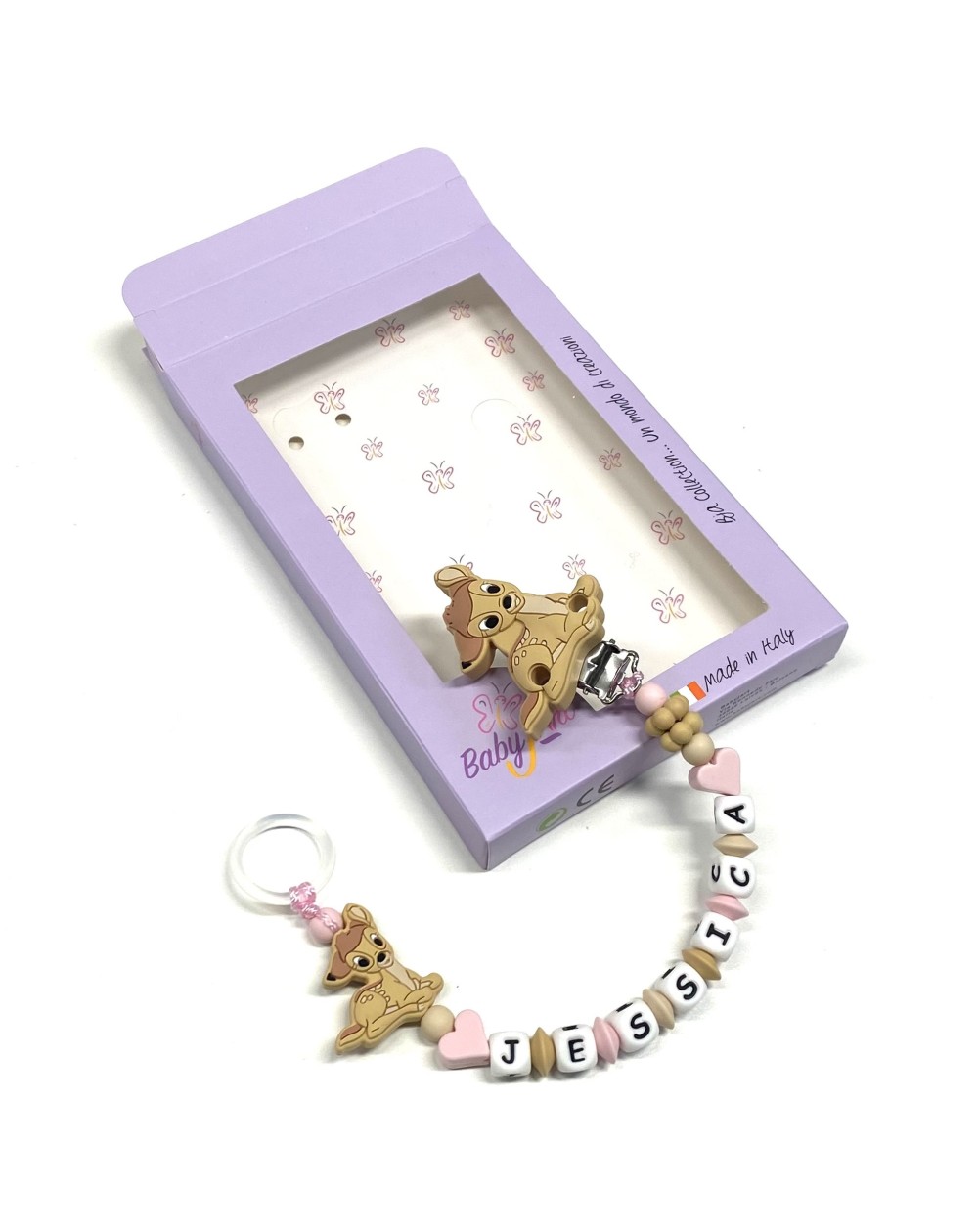 Corrente de Chupeta Personalizada, BAMBI, Chupeta com Nome, Corrente de Silicone, Porta Chupeta Personalizado