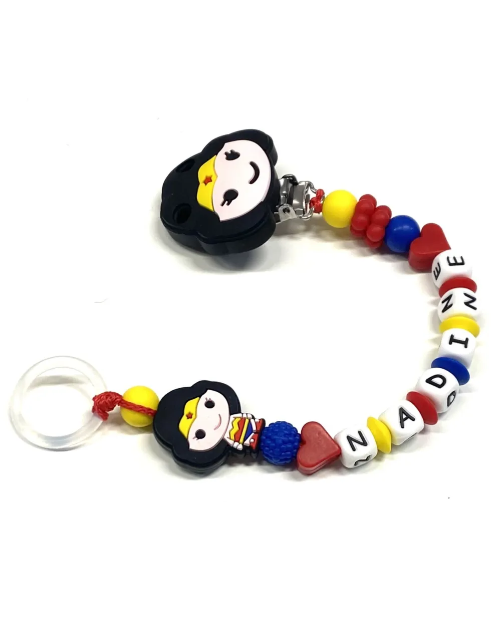 Cateninha Porta-Chupeta Personalizada, WONDERWOMAN, Porta-Chupeta com Nome, Cateninha em Silicone, Porta-Chupeta Personalizado