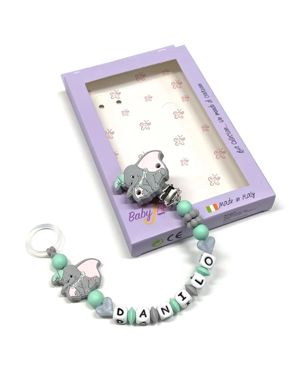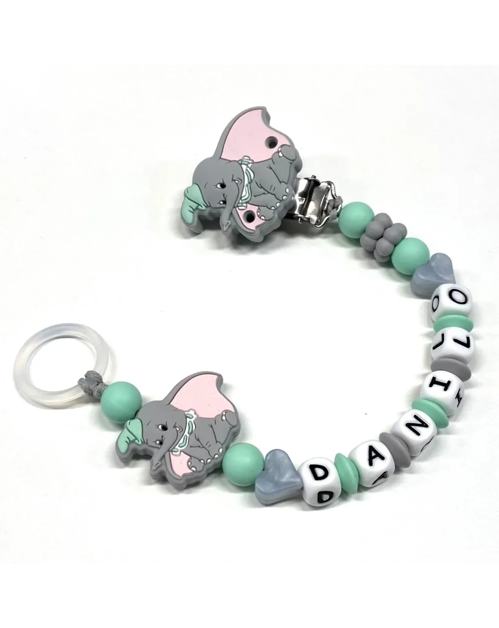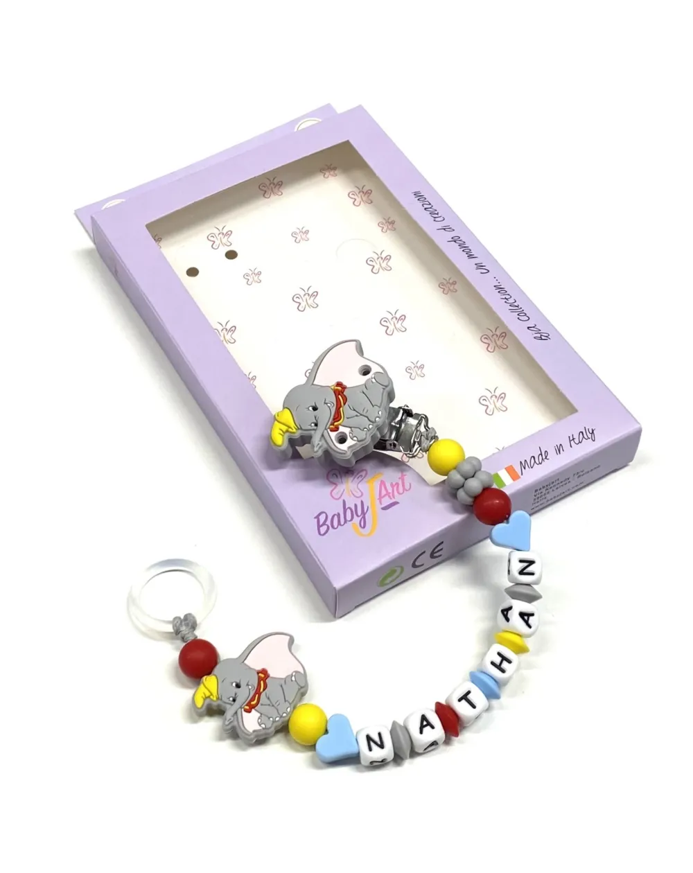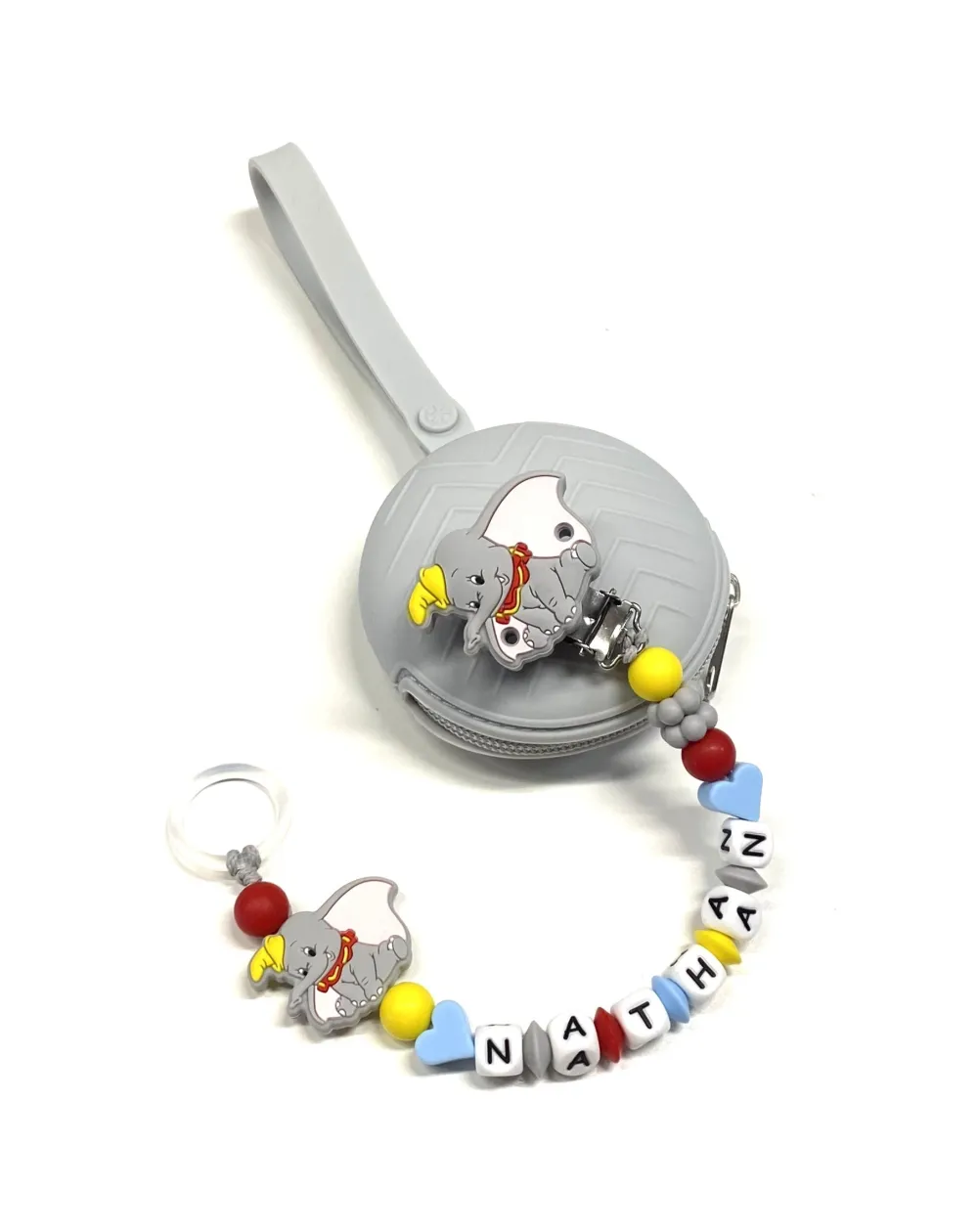 Cateninha Porta-Chupeta Personalizada, DUMBO, Porta-Chupeta com Nome, Cateninha em Silicone, Porta-Chupeta Personalizado