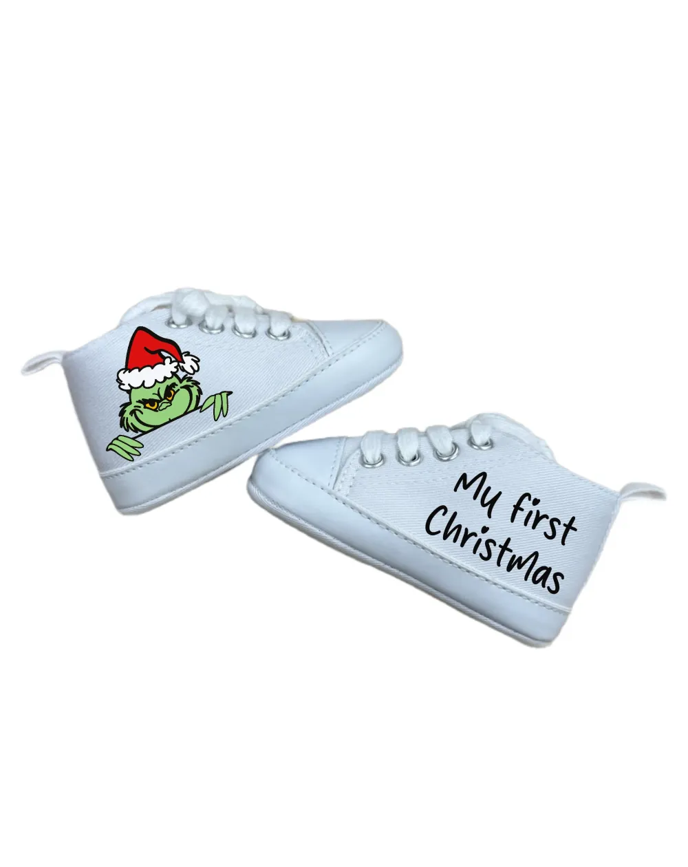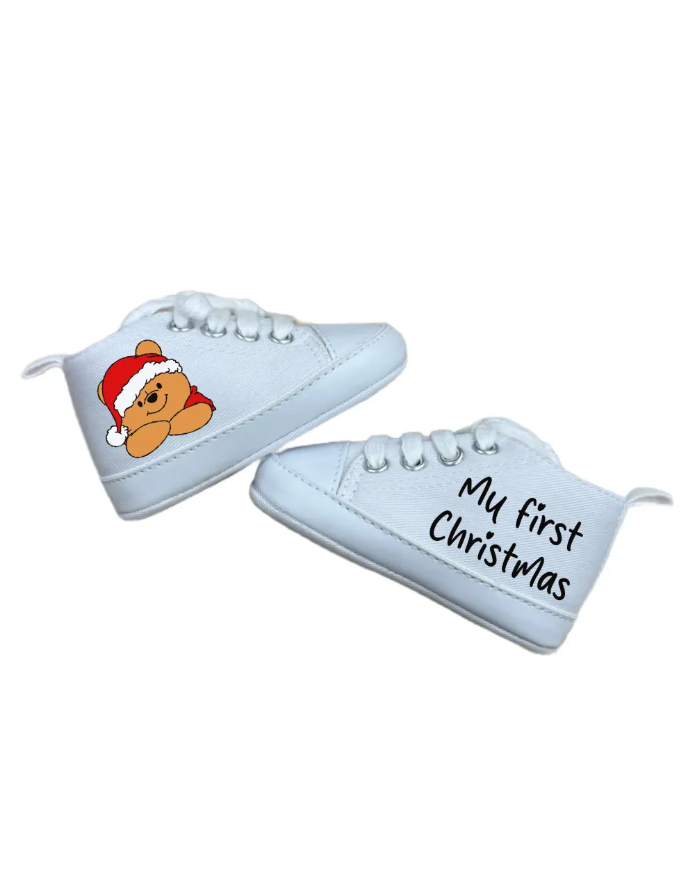 Sapatinhos de bebé personalizados com nome e imagem a cores – Natal